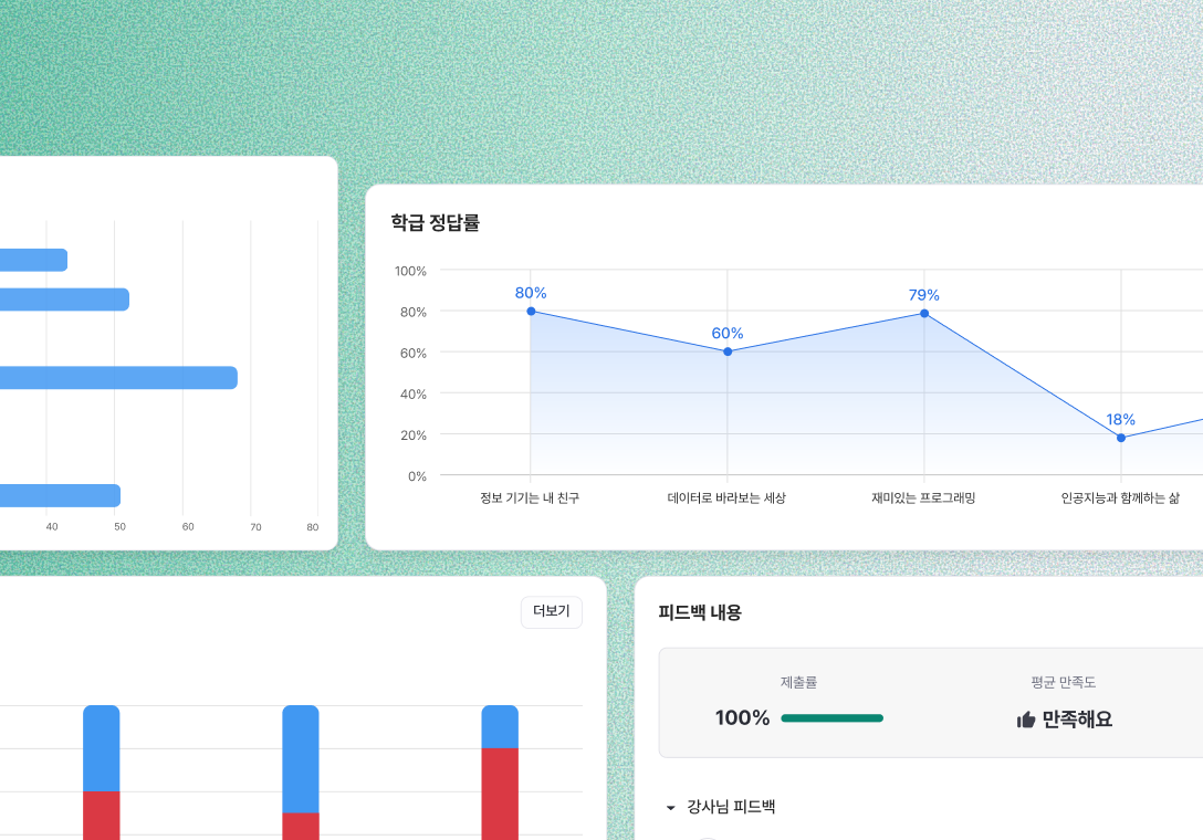 학습의 모든 흐름을 데이터로 남겨, 교육 개선과 맞춤 추천에 활용합니다.